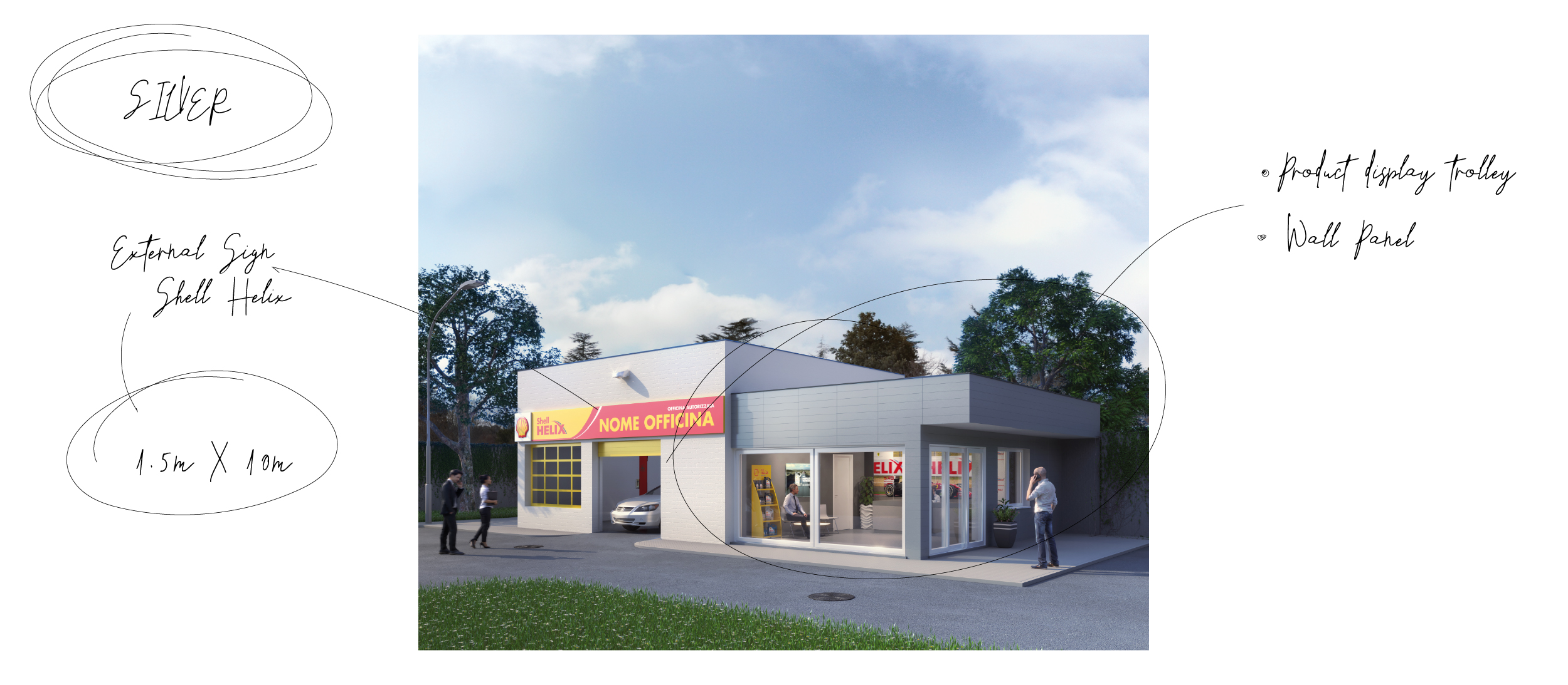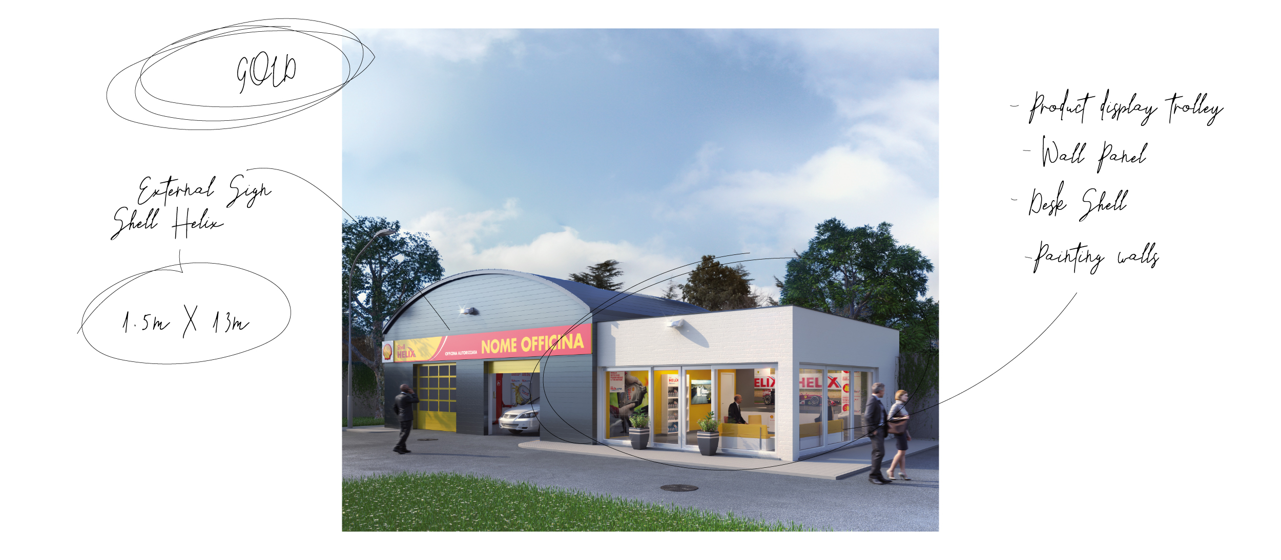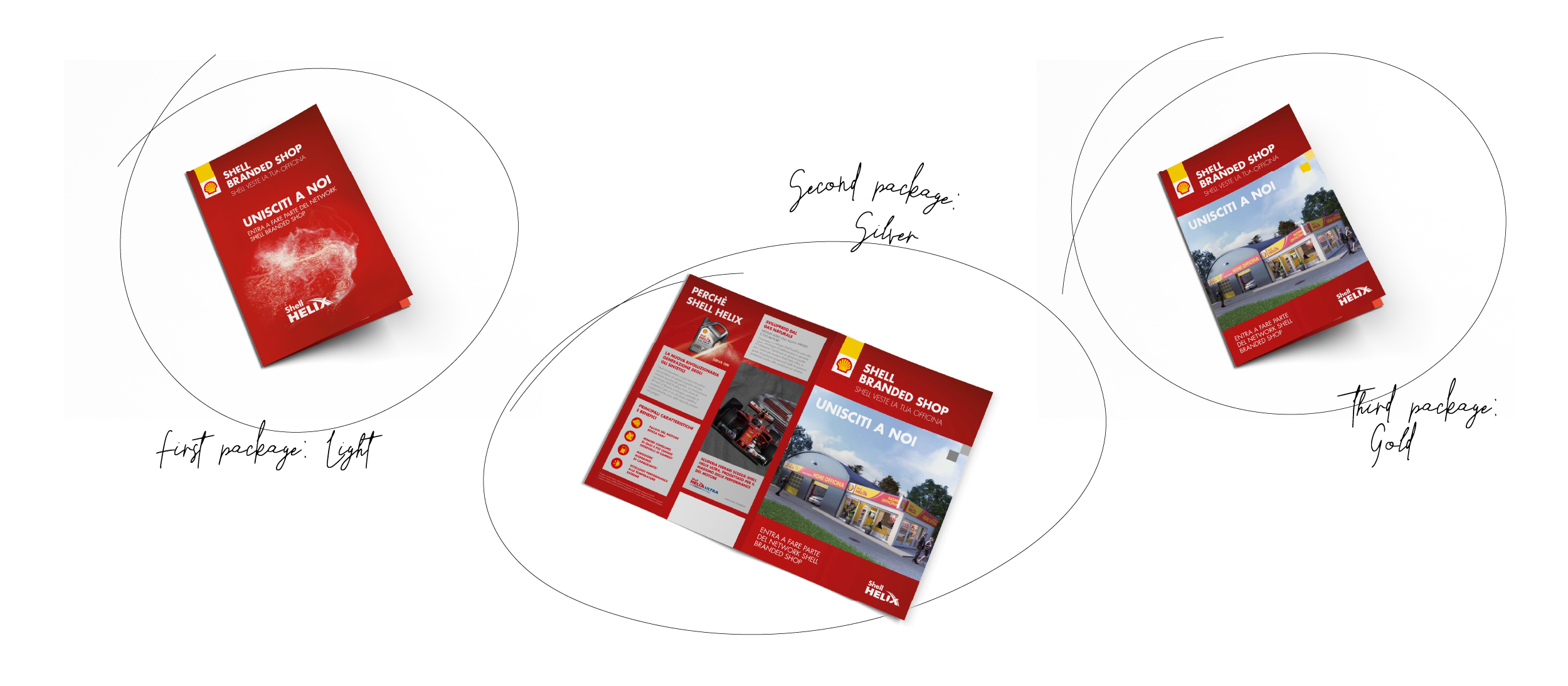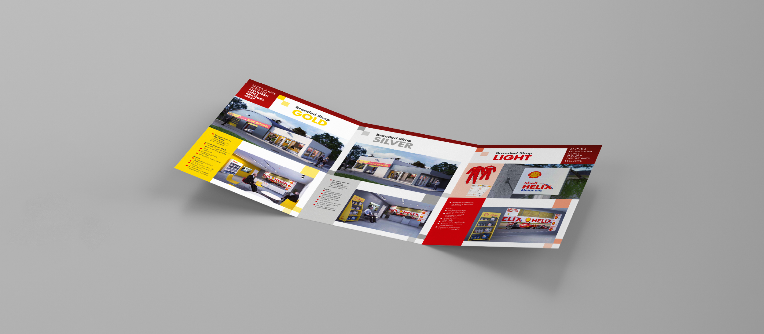 art direction + graphic design + 3D modeling and renderingGold, Silver, Light: tre livelli di personalizzazione per shop di meccanici brandizzati da Shell.