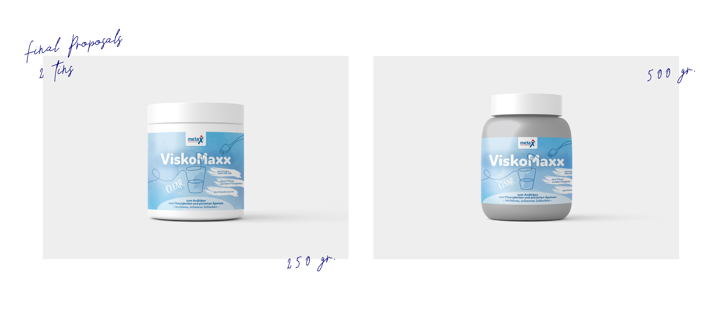 art direction + packaging design + graphic designCi siamo divertiti nell’immaginare una soluzione solubile come qualcosa di lineare, qualcosa che disegnasse una traiettoria propria e compatta: dall’essere il barattolo che la contiene fino al cucchiaio che la risolve, lasciandola disciogliersi altrove. Ed è proprio lì che ci siamo fermati, perché il resto è nel potenziale di Visko Maxx, capace di addensare ogni liquido.