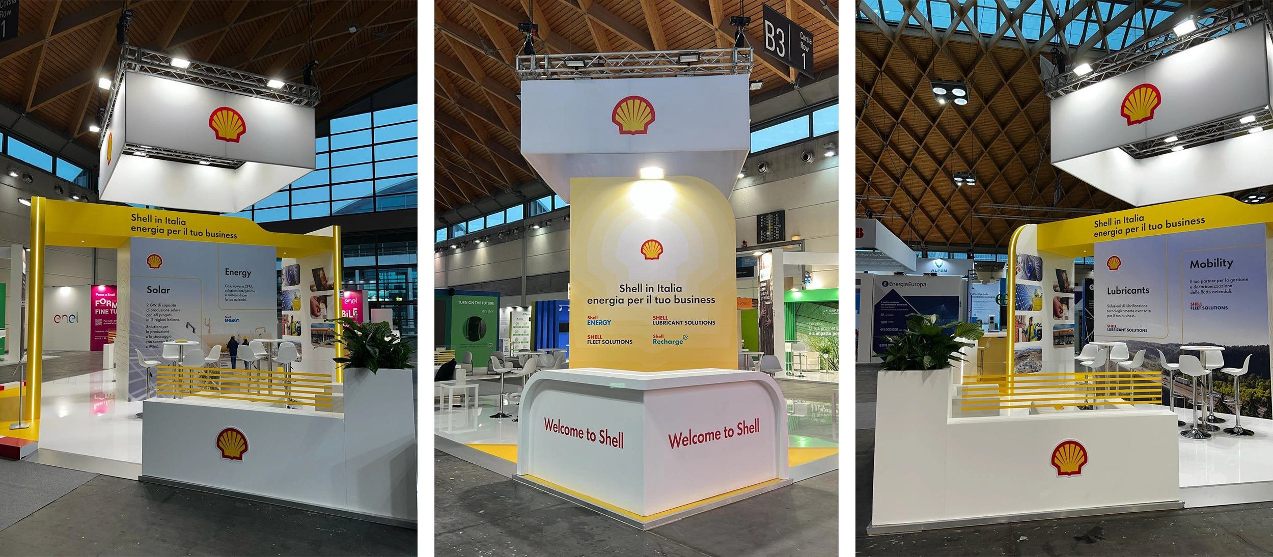 art direction + exhibition stand design + graphic designWide spaces, fluid lines, graphics flowing like energy in motion: Shell Italia’s booths tell the story of a dynamic brand, always evolving and adapting. A visual architecture that welcomes, surprises, and speaks the language of change.